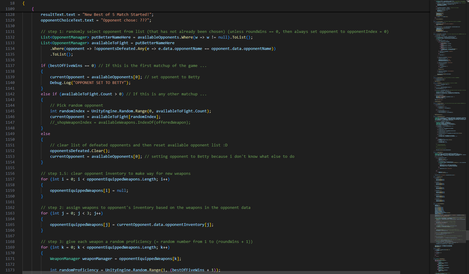 I was the primary coder for this project and worked closely alongside the designers and producer to make all the game's mechanics work properly. I coded all of the scripts used in the game in C# and annotated all my code to make it easier for designers to edit and manipulate it.